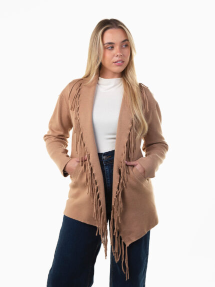 Casaco malha aberto com franjas