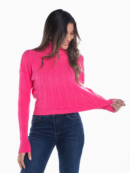 Camisola gola alta malha entrançada