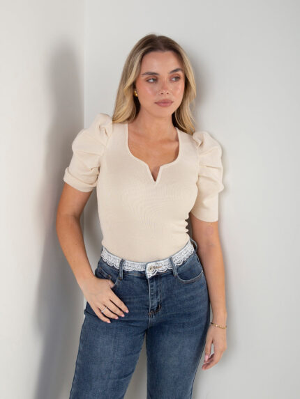 Camisola malha canelada com manga abalonada