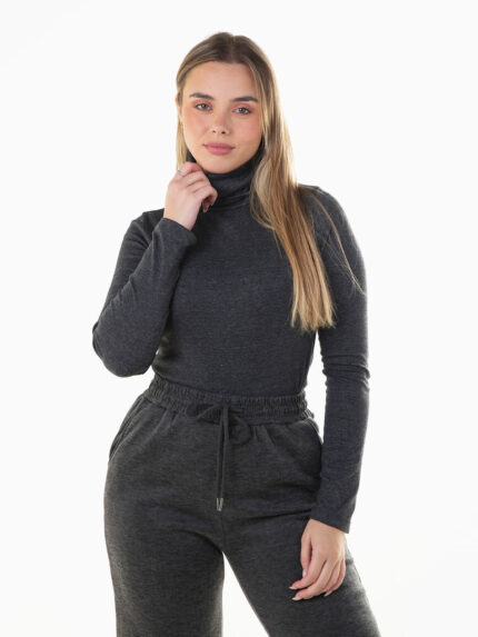 Camisola malha elástica gola alta