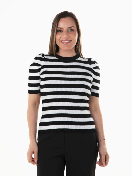 Camisola malha manga curta às riscas