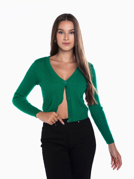 Cardigan canelado cropped