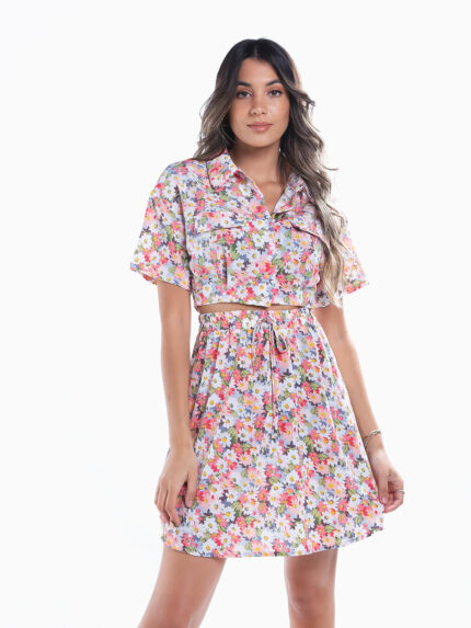 Conjunto camisa e saia estampado flores