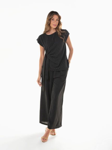 Conjunto riscas blusa e calças