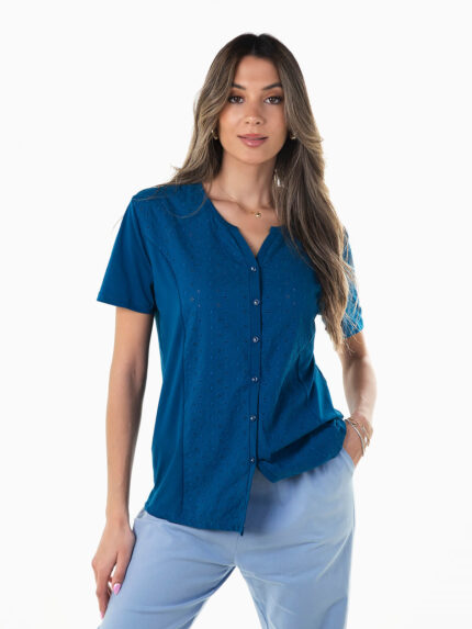 T-shirt com bordado inglês e botões