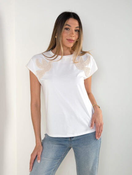 T-shirt com aplicações manga curta