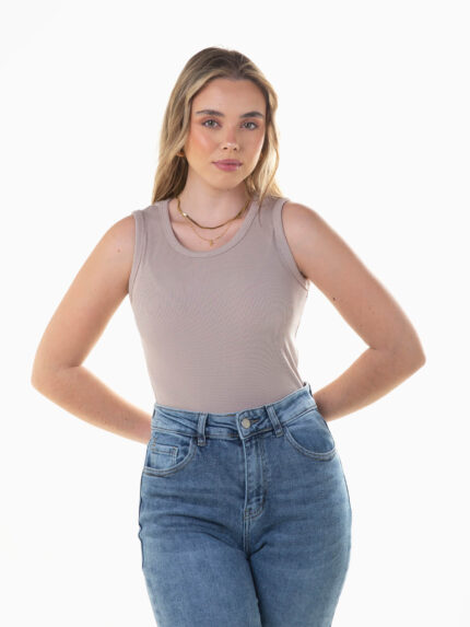 Top canelado sem mangas