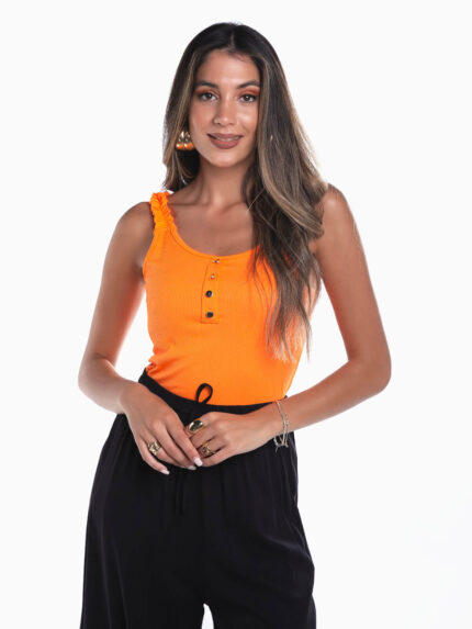 Top malha canelada alça folho