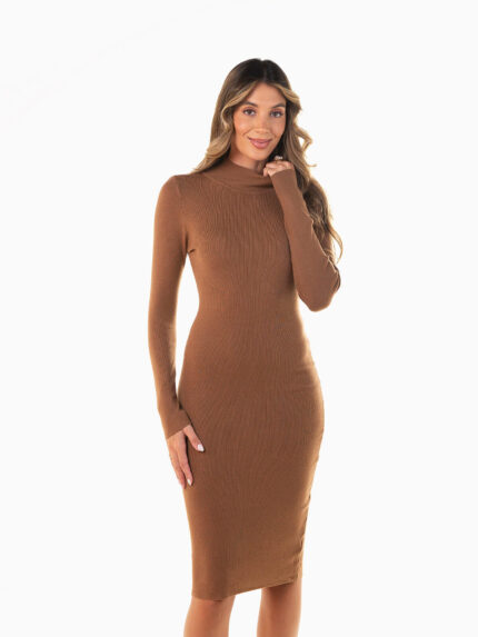 Vestido midi justo malha canelada