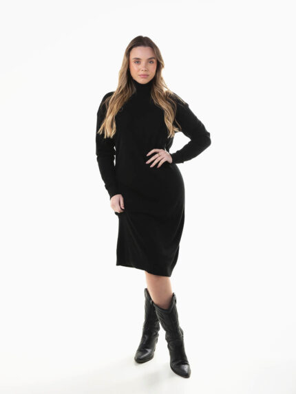 Vestido midi malha com gola alta