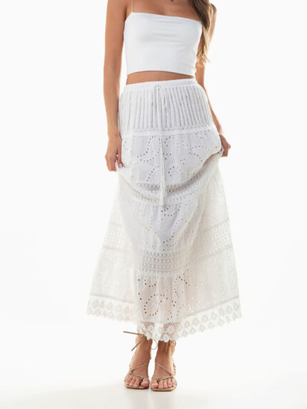 Saia branca comprida bordado inglês