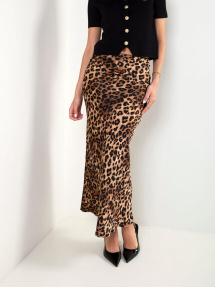 Saia acetinada animal print bege