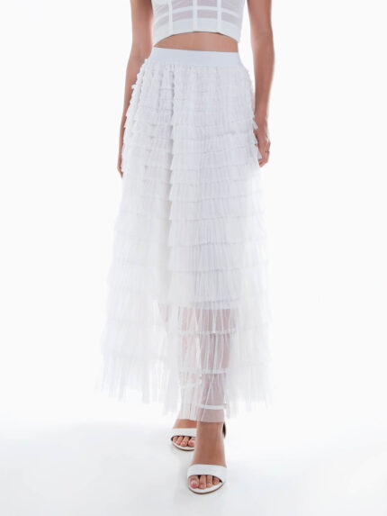 Saia comprida tule com folhos