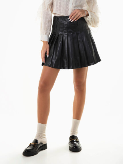 Saia curta pregas efeito pele