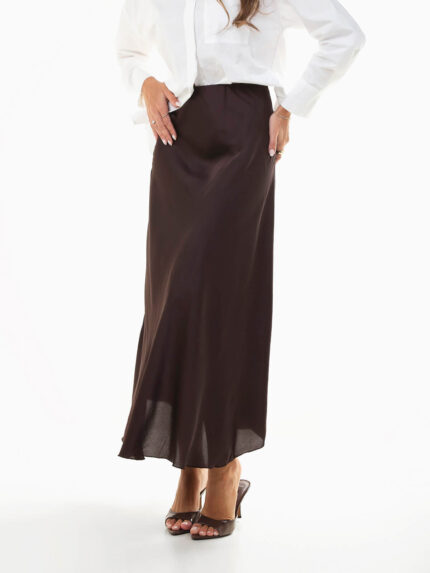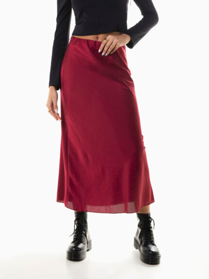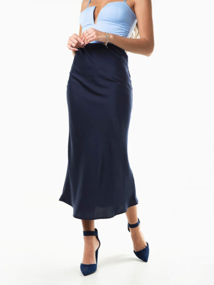 Saia midi acetinada cintura alta