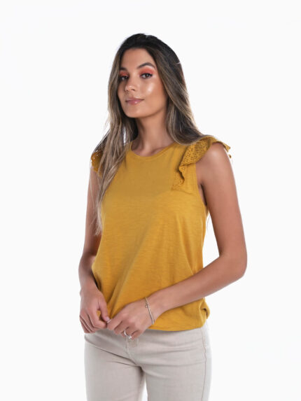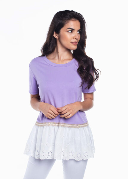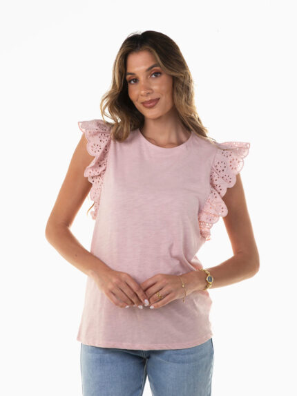 T-shirt com folhos bordado inglês