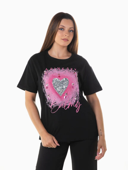 T-shirt com lantejoulas manga curta