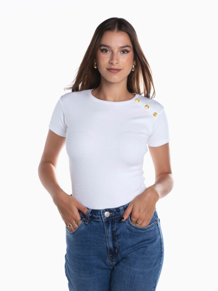 T-shirt malha canelada botões dourados