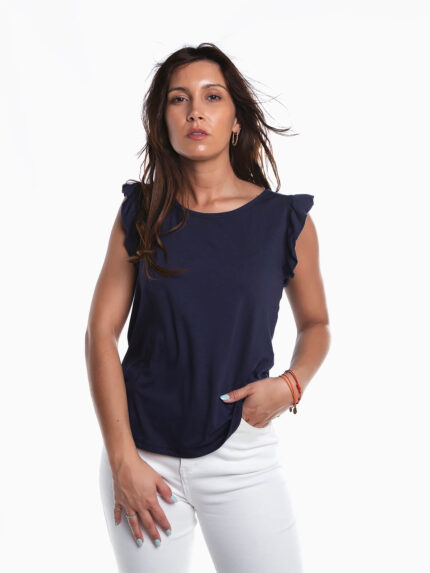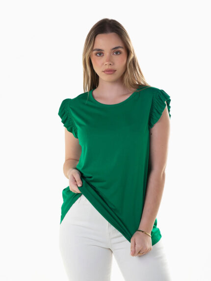 T-shirt manga cava com folho
