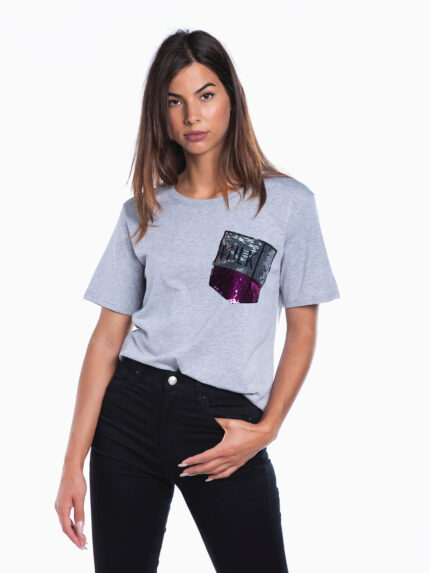 T-shirt lisa com lantejoulas