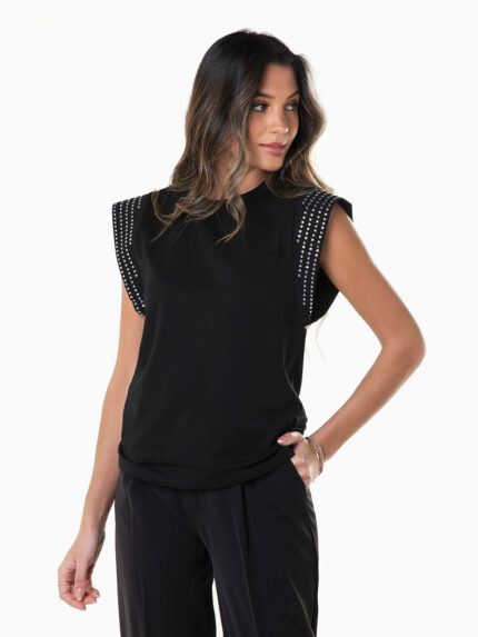 T-shirt manga cava com aplicações