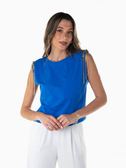 T-shirt manga cava com correntes