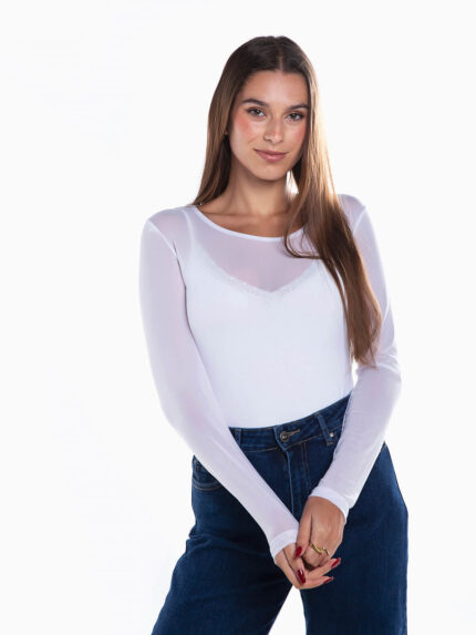 T-shirt manga comprida em tule