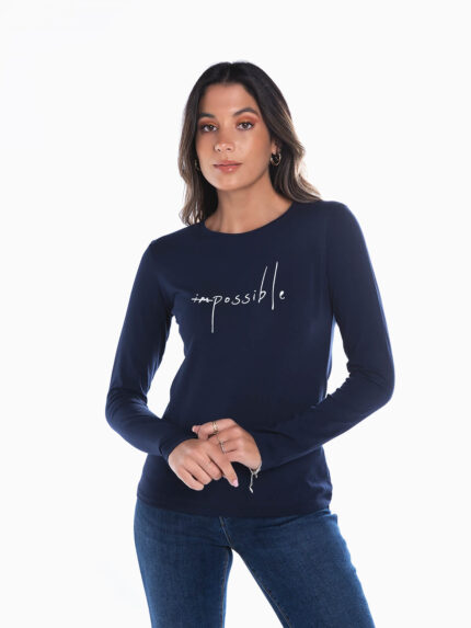 T-shirt manga comprida estampado Impossible