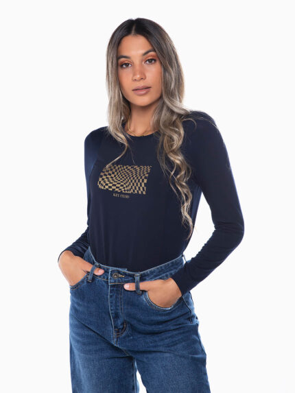 T-shirt manga comprida malha crepe
