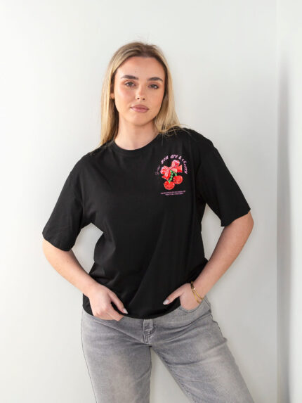 T-shirt manga curta com cerejas