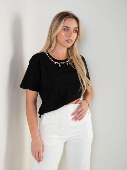 T-shirt manga curta com aplicações