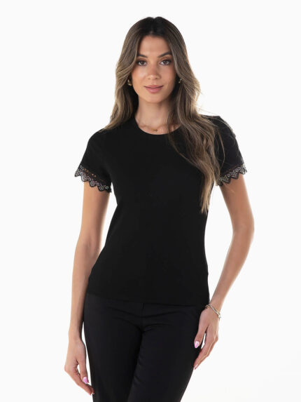 T-shirt manga curta com renda
