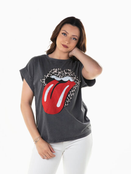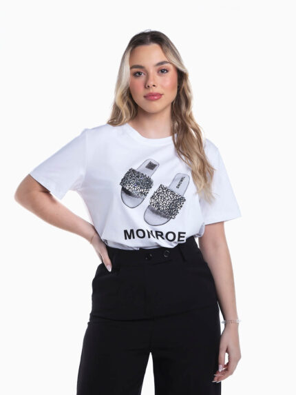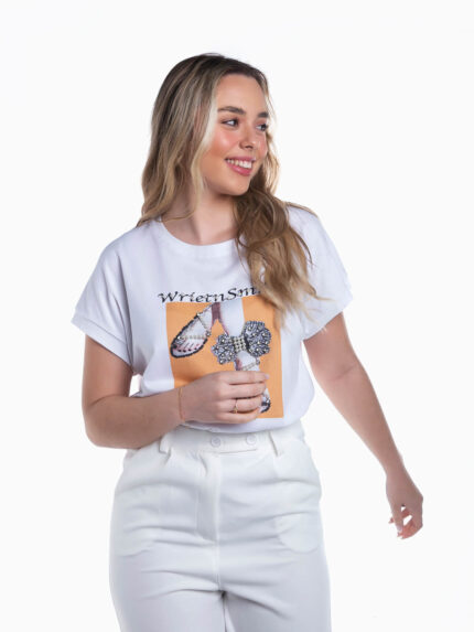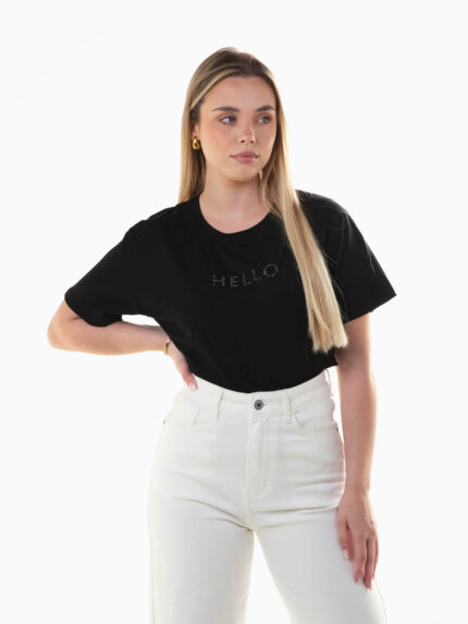 T-shirt manga curta com pedras