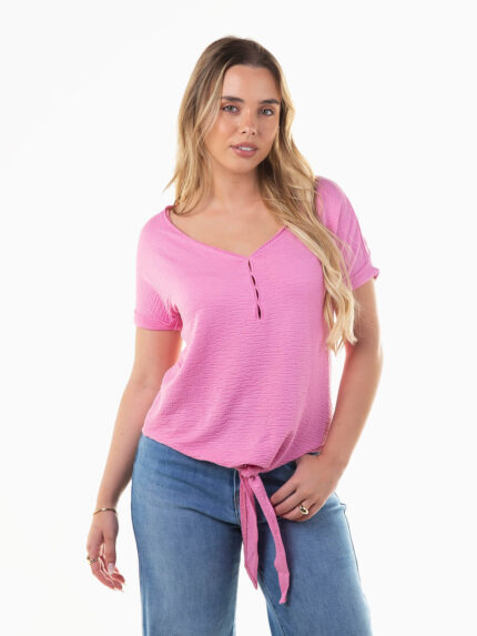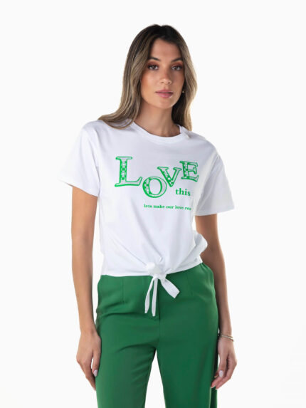 T-shirt manga curta com nó