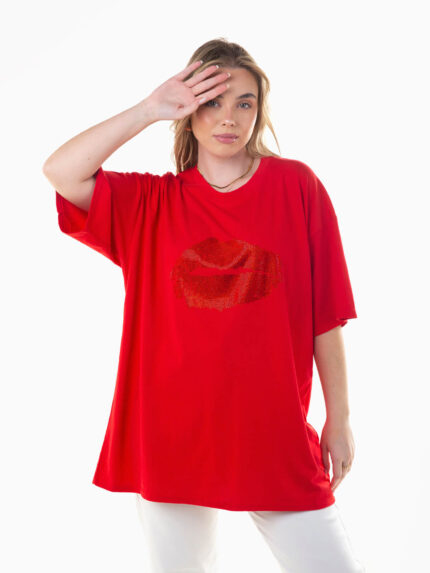 T-shirt oversized com strass