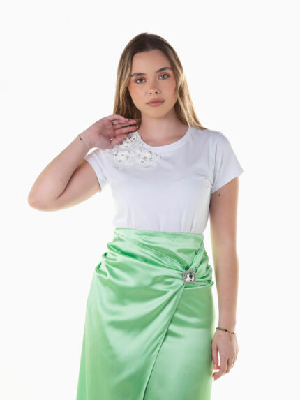 T-shirt branca com bordados