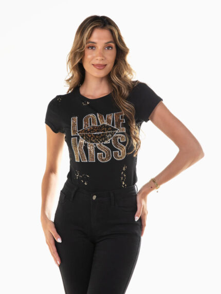 T-shirt branca com brilho e animal print
