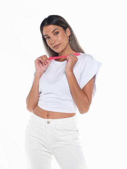 T-shirt sem mangas bordada