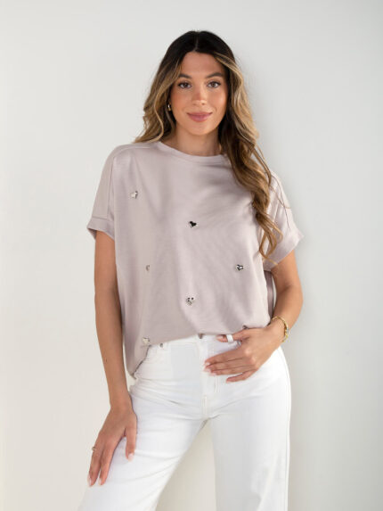 T-shirt pérola com bordados