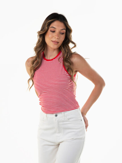 Top às riscas sem mangas