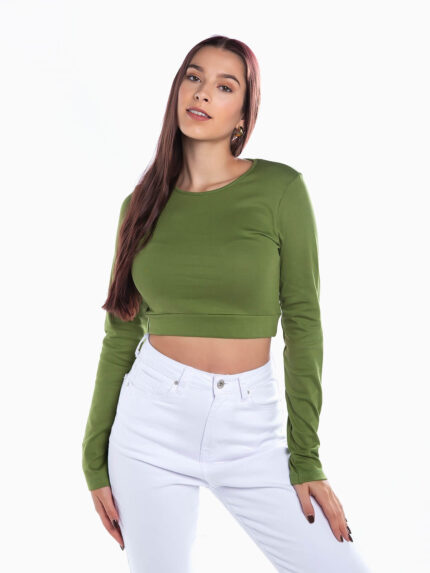 Top malha curto manga comprida