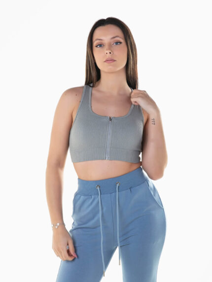 Crop top canelado com fecho