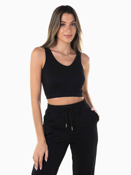 Crop top canelado elástico