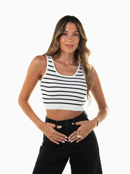 Crop top canelado às riscas