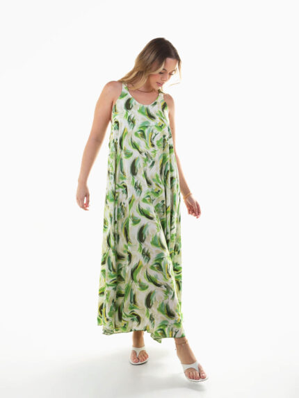 Vestido comprido com estampado frontal