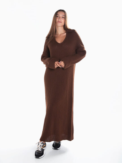Vestido comprido oversize malha canelada