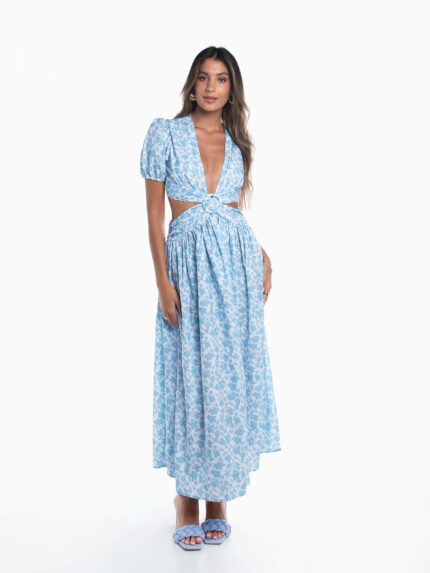 Vestido comprido plissado cut out