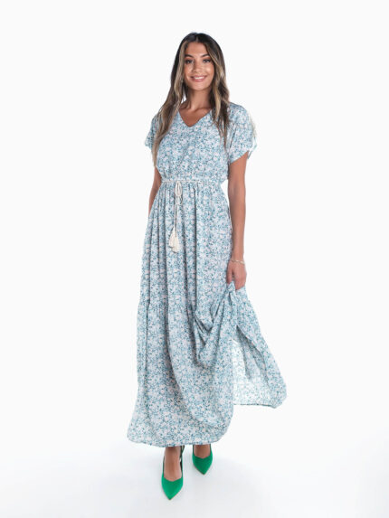 Vestido comprido floral com cinto