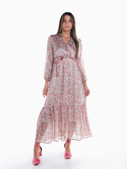 Vestido comprido floral combinado