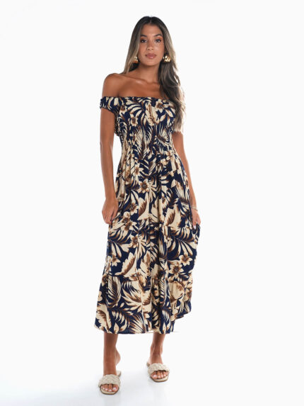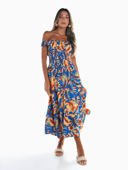 Vestido comprido floral elástico